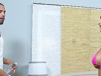 Hot blonde girl Jessica Nix bounces her perfect tits up and down as she gets fucked by her boyfriend