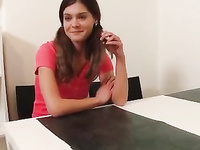 All this guy needs is a few minutes one-on-one with a cute teeny he picked up on the street to make her want him so bad she totally forgets about morale and principles. Now this eager kitten wants nothing more than to take his fat cock in her mouth and pussy and get her brains fucked out right on a table. Yeah, he knows the secret words that can turn even the shyest chick into a naughty slut and he doesn't hesitate to use 'em. This trick always works and today he gets the best pussy ever banging his new gf from behind like a horny stud.