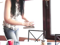 Look at this nerdy coed in cute eyeglasses playing all shy when a guy makes a move on her in a local cafe! She seems so aloof and bashful at first, but you can feel the sexual tension build up between these two. No wonder they end up getting butt-naked for a hot steamy fuck with no strings attached. That pussy looks perfect swallowing hard cock and riding up and down till the guy is ready to cum all over her face and eyeglasses.