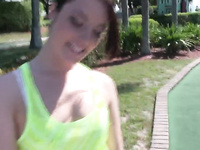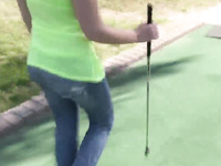 Enticing naughty girl Nikki Lavay sucks and fucks a lucky dudes cock after she gets beaten in a golf game