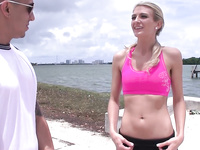 Slim sexy teen babe Amanda Tate gets a massive fuck from a big cock dude after doing her daily routine exercise